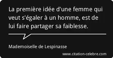 La première idée d'une femme qui veut s'égaler à un homme, est de lui faire partager sa faiblesse.