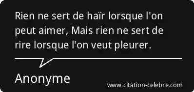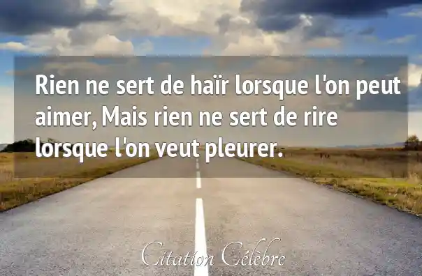 Rien ne sert de haïr lorsque l'on peut aimer, Mais rien ne sert de rire lorsque l'on veut pleurer.