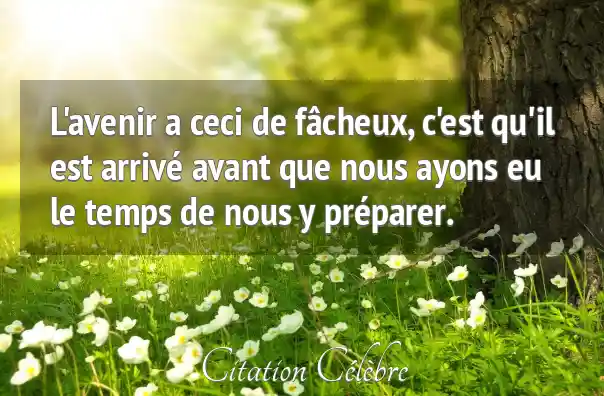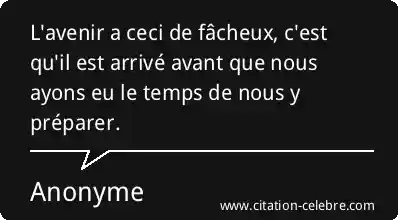 L'avenir a ceci de fâcheux, c'est qu'il est arrivé avant que nous ayons eu le temps de nous y préparer.