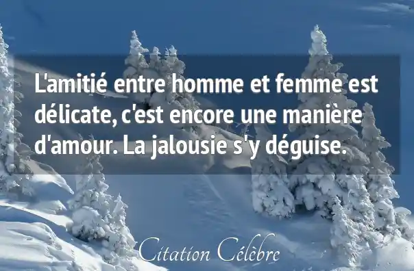 L'amitié entre homme et femme est délicate, c'est encore une manière d'amour. La jalousie s'y déguise.