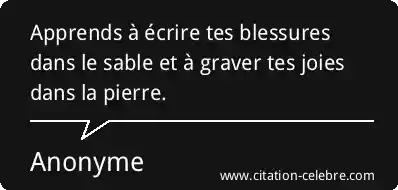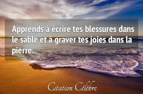 Apprends à écrire tes blessures dans le sable et à graver tes joies dans la pierre.