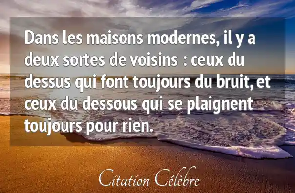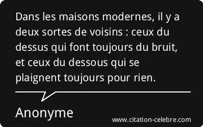 Dans les maisons modernes, il y a deux sortes de voisins : ceux du dessus qui font toujours du bruit, et ceux du dessous qui se plaignent toujours pour rien.