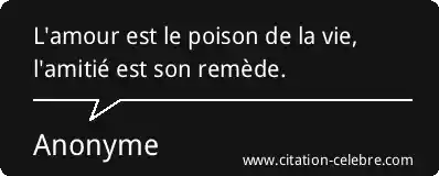 L'amour est le poison de la vie, l'amitié est son remède.