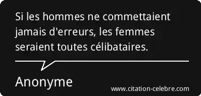 Si les hommes ne commettaient jamais d'erreurs, les femmes seraient toutes célibataires.