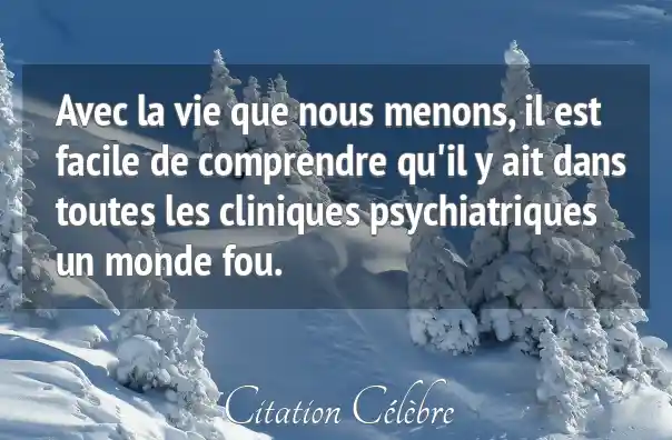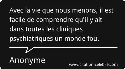 Avec la vie que nous menons, il est facile de comprendre qu'il y ait dans toutes les cliniques psychiatriques un monde fou.