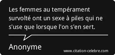 Les femmes au tempérament survolté ont un sexe à piles qui ne s'use que lorsque l'on s'en sert.