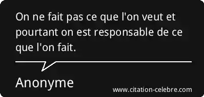 On ne fait pas ce que l'on veut et pourtant on est responsable de ce que l'on fait.