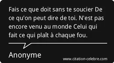 Fais ce que doit sans te soucier De ce qu'on peut dire de toi. N'est pas encore venu au monde Celui qui fait ce qui plaît à chaque fou.