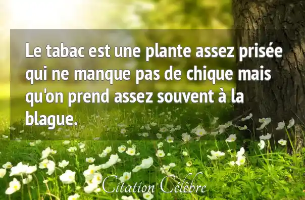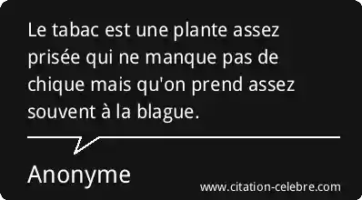 Le tabac est une plante assez prisée qui ne manque pas de chique mais qu'on prend assez souvent à la blague.