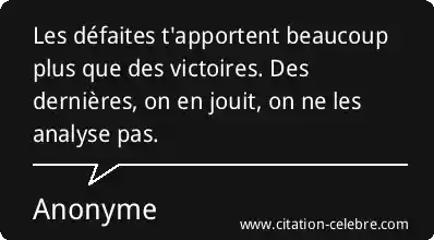 Les défaites t'apportent beaucoup plus que des victoires. Des dernières, on en jouit, on ne les analyse pas.
