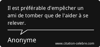 Il est préférable d'empêcher un ami de tomber que de l'aider à se relever.