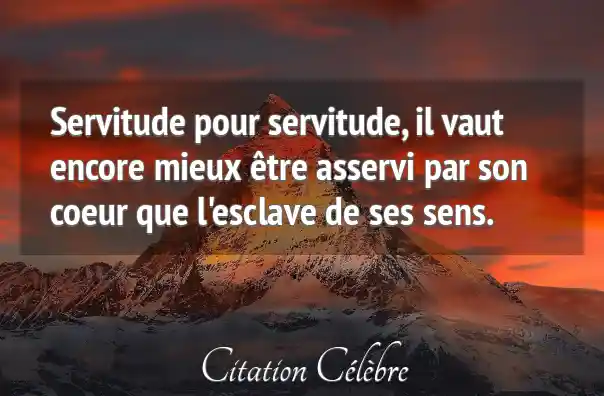 Servitude pour servitude, il vaut encore mieux être asservi par son coeur que l'esclave de ses sens.