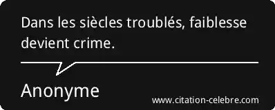 Dans les siècles troublés, faiblesse devient crime.