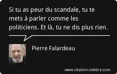 Si tu as peur du scandale, tu te mets à parler comme les politiciens. Et là, tu ne dis plus rien.