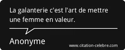 Citation Anonyme femme : La galanterie c'est l'art de mettre une femme en valeur....