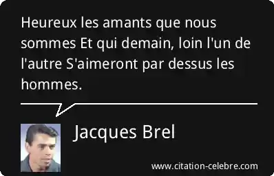 Heureux les amants que nous sommes Et qui demain, loin l'un de l'autre S'aimeront par dessus les hommes.