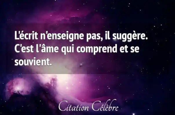 L'écrit n'enseigne pas, il suggère. C'est l'âme qui comprend et se souvient.