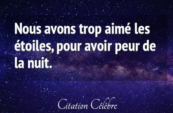 Nous avons trop aimé les étoiles, pour avoir peur de la nuit.