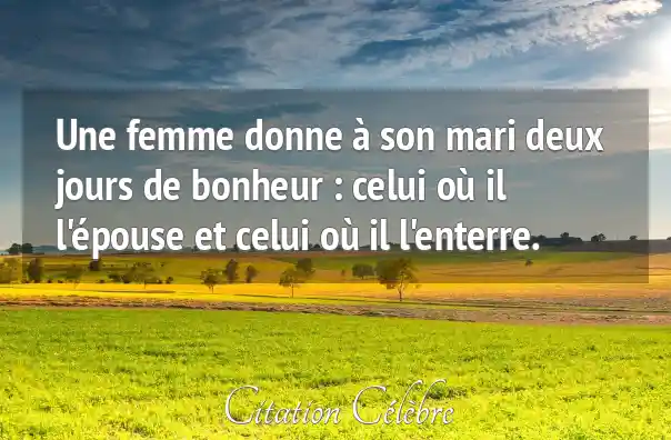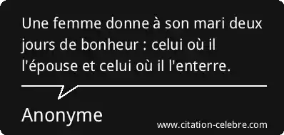 Une femme donne à son mari deux jours de bonheur : celui où il l'épouse et celui où il l'enterre.