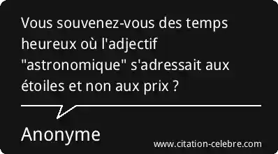 Vous souvenez-vous des temps heureux où l'adjectif "astronomique" s'adressait aux étoiles et non aux prix ?
