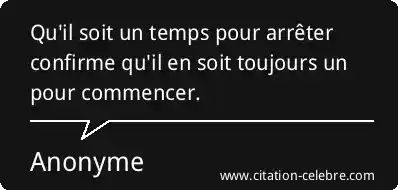 Qu'il soit un temps pour arrêter confirme qu'il en soit toujours un pour commencer.