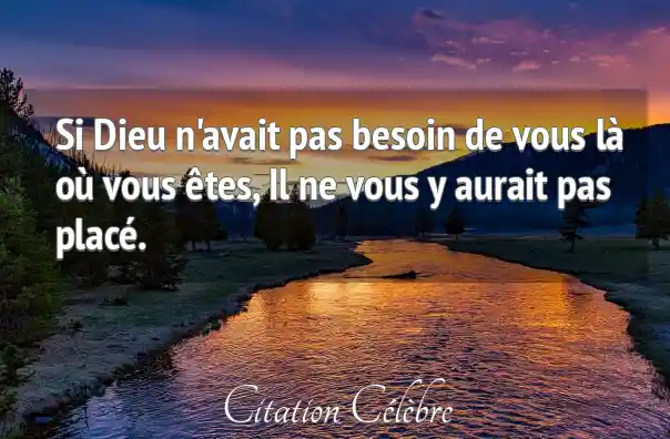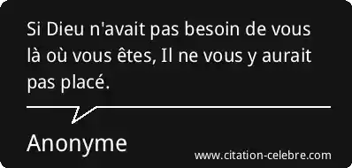 Si Dieu n'avait pas besoin de vous là où vous êtes, Il ne vous y aurait pas placé.