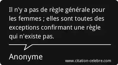 Il n'y a pas de règle générale pour les femmes ; elles sont toutes des exceptions confirmant une règle qui n'existe pas.