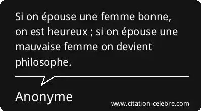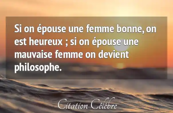 Si on épouse une femme bonne, on est heureux ; si on épouse une mauvaise femme on devient philosophe.