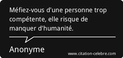 Méfiez-vous d'une personne trop compétente, elle risque de manquer d'humanité.