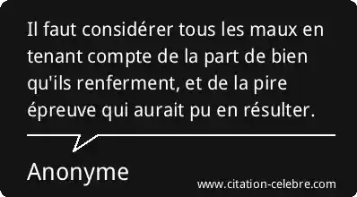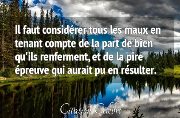Il faut considérer tous les maux en tenant compte de la part de bien qu'ils renferment, et de la pire épreuve qui aurait pu en résulter.