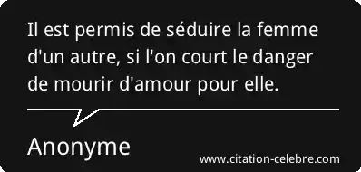 Il est permis de séduire la femme d'un autre, si l'on court le danger de mourir d'amour pour elle.