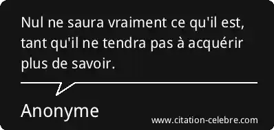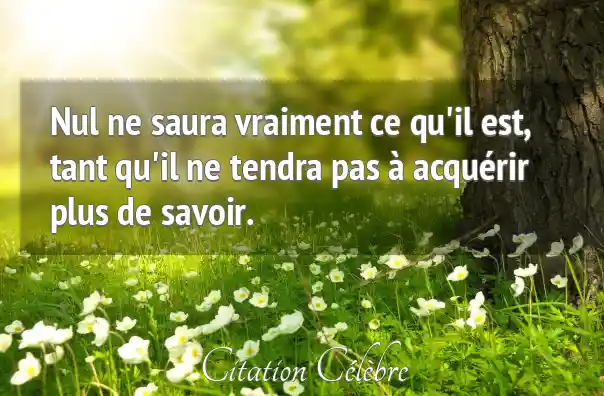 Nul ne saura vraiment ce qu'il est, tant qu'il ne tendra pas à acquérir plus de savoir.