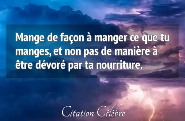 Mange de façon à manger ce que tu manges, et non pas de manière à être dévoré par ta nourriture.