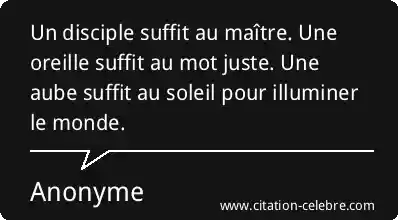 Un disciple suffit au maître. Une oreille suffit au mot juste. Une aube suffit au soleil pour illuminer le monde.