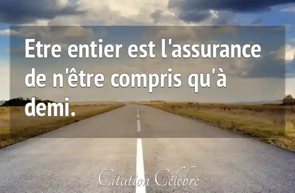 Etre entier est l'assurance de n'être compris qu'à demi.
