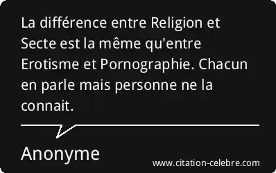 La différence entre Religion et Secte est la même qu'entre Erotisme et Pornographie. Chacun en parle mais personne ne la connait.
