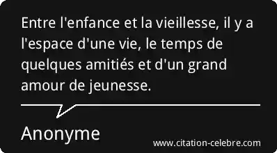 Entre l'enfance et la vieillesse, il y a l'espace d'une vie, le temps de quelques amitiés et d'un grand amour de jeunesse.