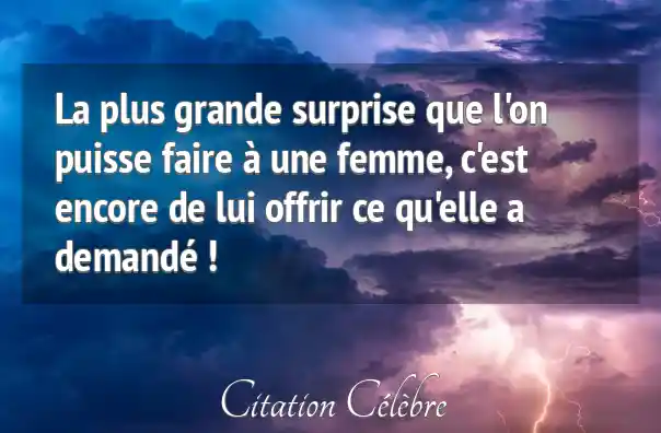La plus grande surprise que l'on puisse faire à une femme, c'est encore de lui offrir ce qu'elle a demandé !
