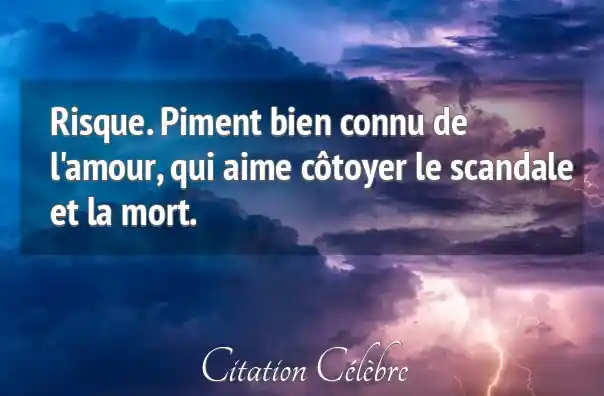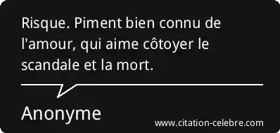 Risque. Piment bien connu de l'amour, qui aime côtoyer le scandale et la mort.