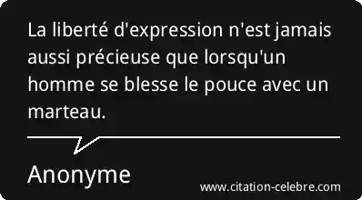 La liberté d'expression n'est jamais aussi précieuse que lorsqu'un homme se blesse le pouce avec un marteau.