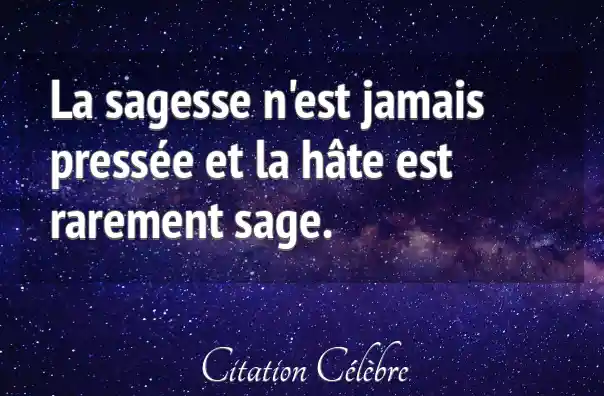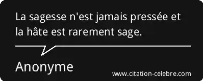 La sagesse n'est jamais pressée et la hâte est rarement sage.