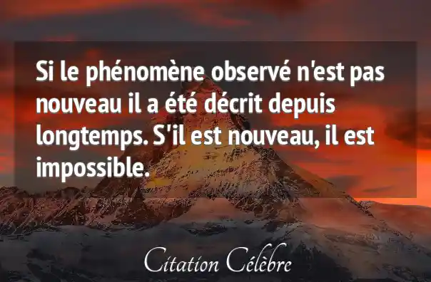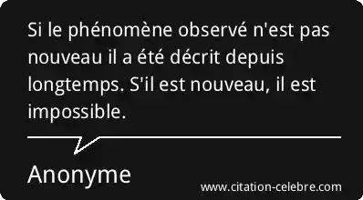 Si le phénomène observé n'est pas nouveau il a été décrit depuis longtemps. S'il est nouveau, il est impossible.