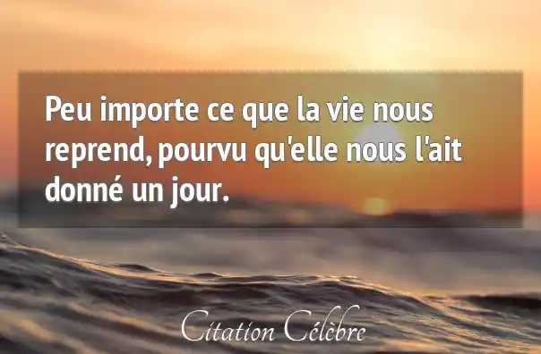 Peu importe ce que la vie nous reprend, pourvu qu'elle nous l'ait donné un jour.