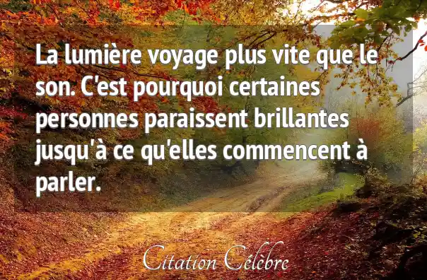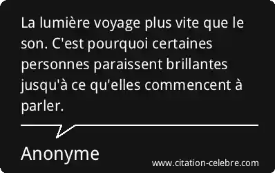 La lumière voyage plus vite que le son. C'est pourquoi certaines personnes paraissent brillantes jusqu'à ce qu'elles commencent à parler.