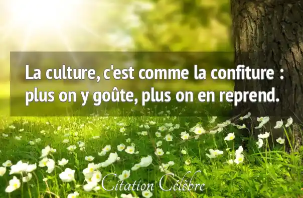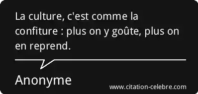 La culture, c'est comme la confiture : plus on y goûte, plus on en reprend.