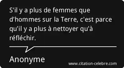 S'il y a plus de femmes que d'hommes sur la Terre, c'est parce qu'il y a plus à nettoyer qu'à réfléchir.