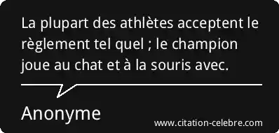 La plupart des athlètes acceptent le règlement tel quel ; le champion joue au chat et à la souris avec.