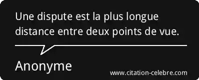 Une dispute est la plus longue distance entre deux points de vue.
