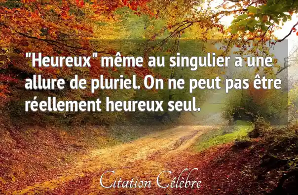 La plupart des hommes font du bonheur une condition. Mais le bonheur ne se rencontre que lorsqu'on ne pose pas de condition.