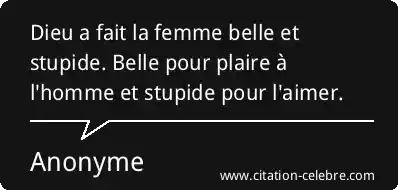 Dieu a fait la femme belle et stupide. Belle pour plaire à l'homme et stupide pour l'aimer.